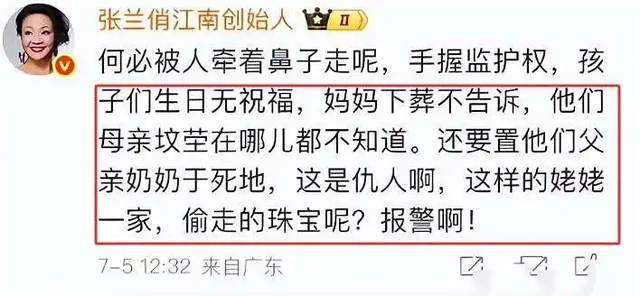 有网友猜测,S妈此时发文可能和张兰最近的言论有关。就在前一天,张兰在直播中再次提及大S珠宝被盗一事,并暗示此事与S家有关,甚至扬言要报警处理。虽然张兰的账号曾被封禁,但她依然时不时在社交平台发声,维护自家利益。